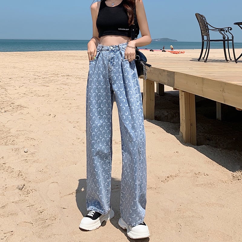 Pantalones rectos holgados y ajustados con estampado para mujer que arrastran hasta el suelo