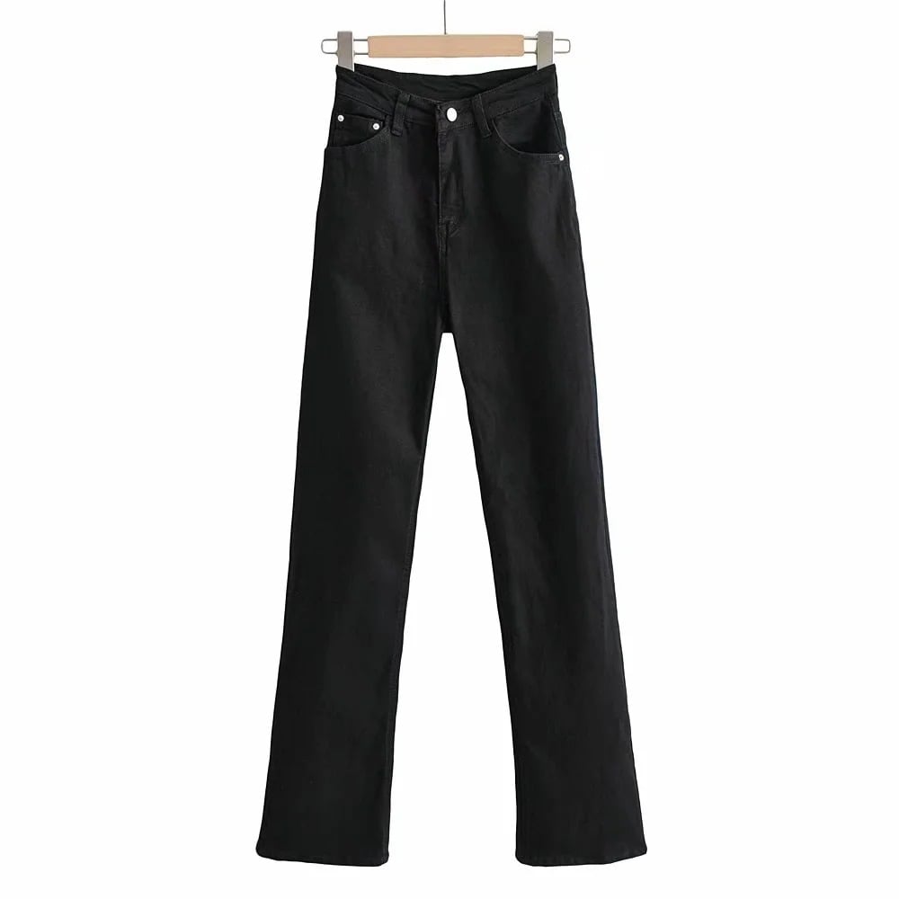Vaqueros acampanados ajustados retro estilo europeo y americano para mujer - Negro / Grande está agotado y se enviará tan pronto como vuelva a estar disponible.