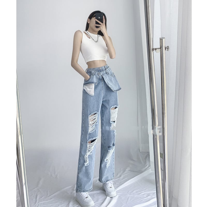Vaqueros cruzados de cintura alta y holgados para mujer de estilo Fried Street