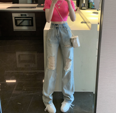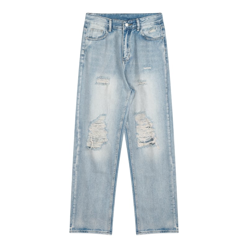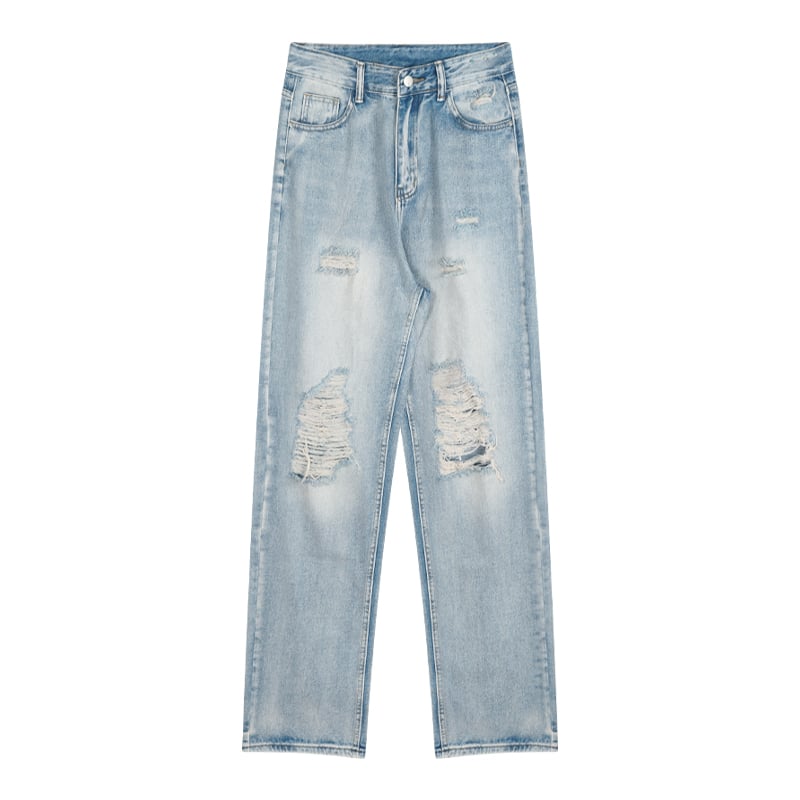 Vaqueros de pierna vertical deshilachados de color azul claro
