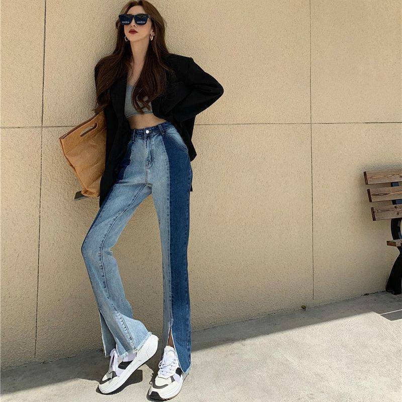 Vaqueros rectos con abertura y cintura alta, sueltos y finos para mujer