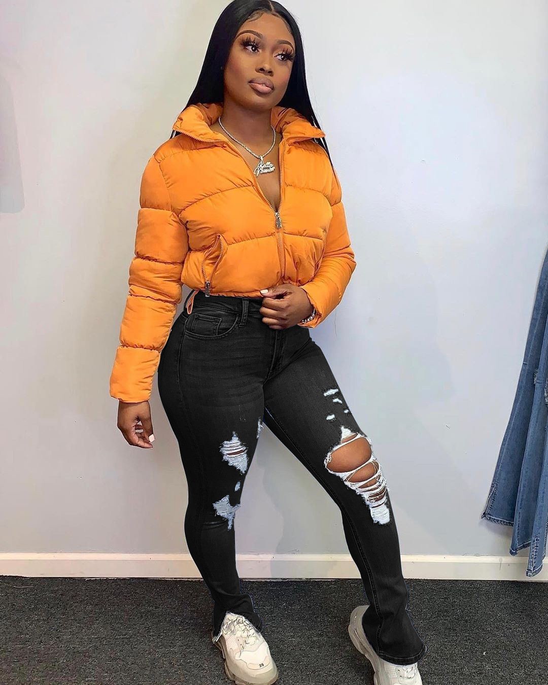 Vaqueros rotos con flecos - Negro / Grande está agotado y se enviará tan pronto como vuelva a estar disponible.