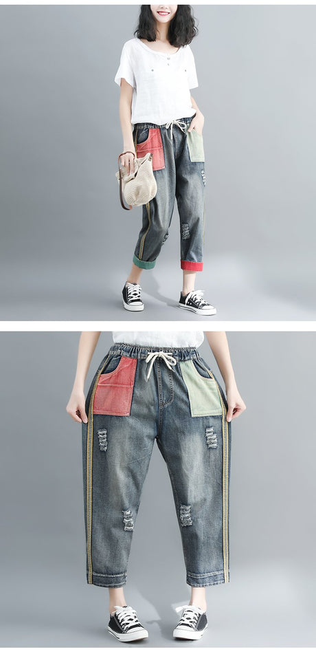 Pantalones microacampanados holgados irregulares con patchwork vintage