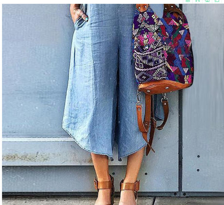 Pantalones anchos de pierna alta, holgados, estilo retro, de color azul fino