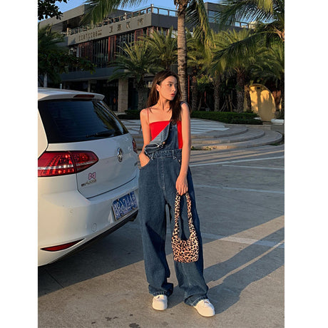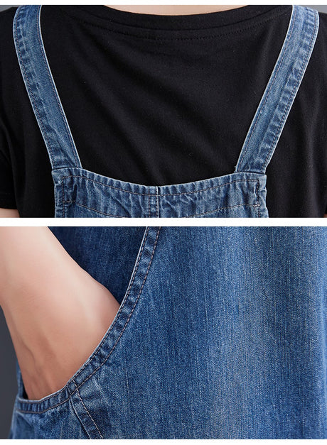 Overol de mezclilla lavado con efecto lavado real para mujer