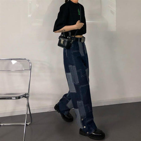 Vaqueros holgados de cuadros con botones en tallas grandes para mujer