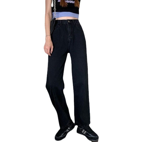 Pantalones vaqueros holgados de pierna ancha y color liso para mujer