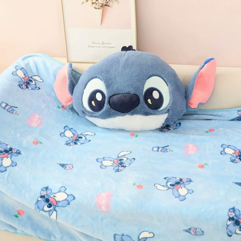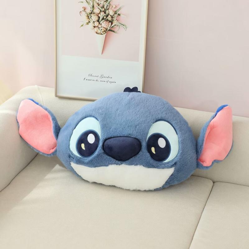 La almohada de tres ojos mide aproximadamente 44 x 29 cm, y la almohada Stitch mide aproximadamente 47 x 30 cm.