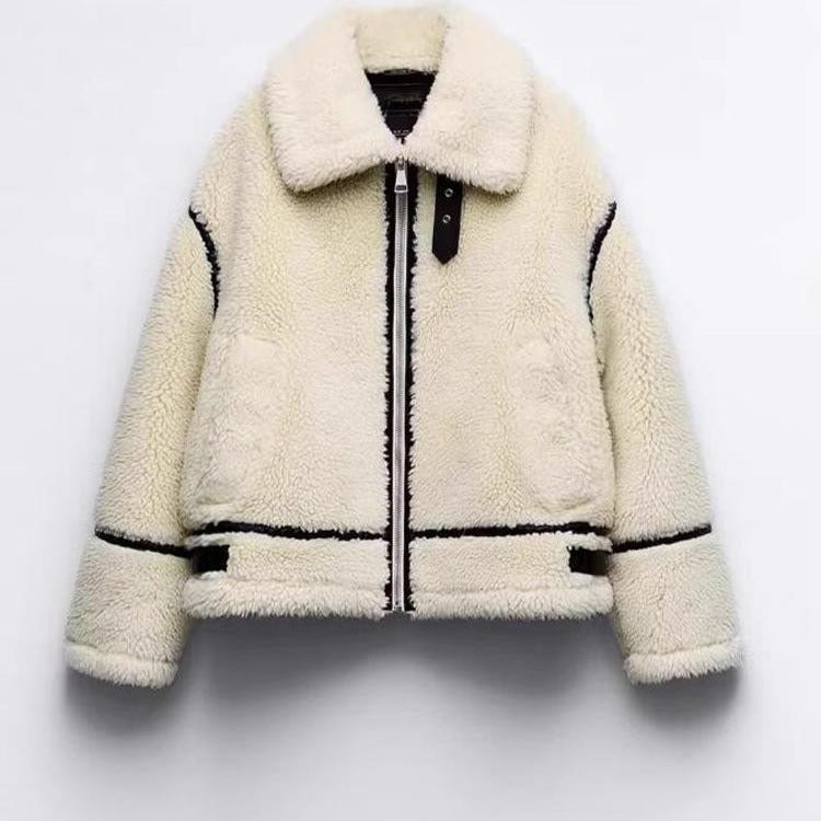 Abrigo de lana de cordero informal de moda integrado con forro polar para mujer, original de TAOP & ZA, otoño e invierno, nuevo - Blanco / Chico está agotado y se enviará tan pronto como vuelva a estar disponible.