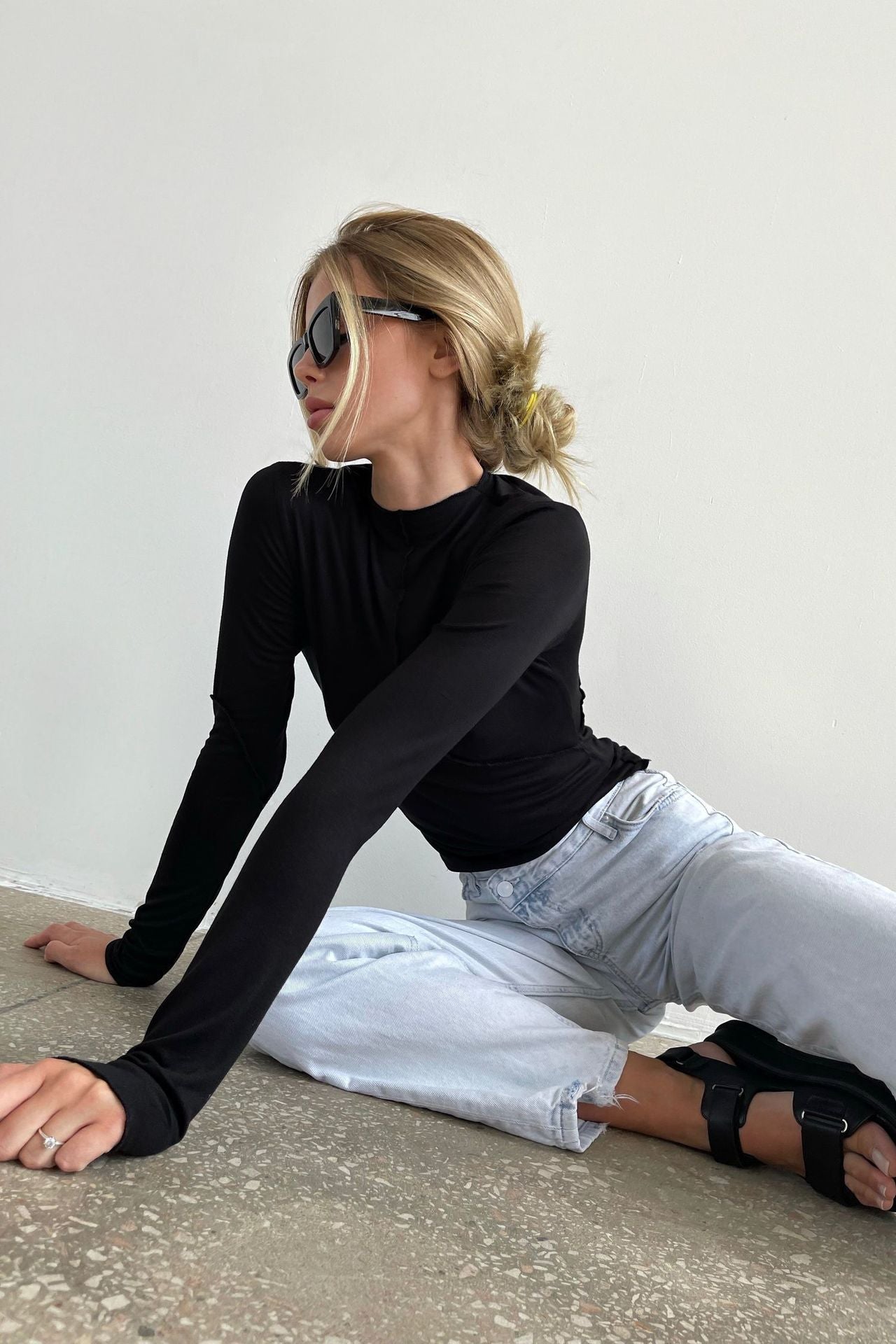 Camiseta de manga larga para mujer - Negro / Chico está agotado y se enviará tan pronto como vuelva a estar disponible.