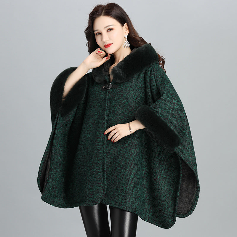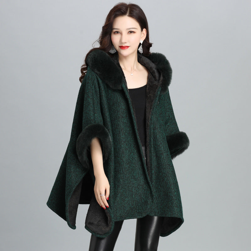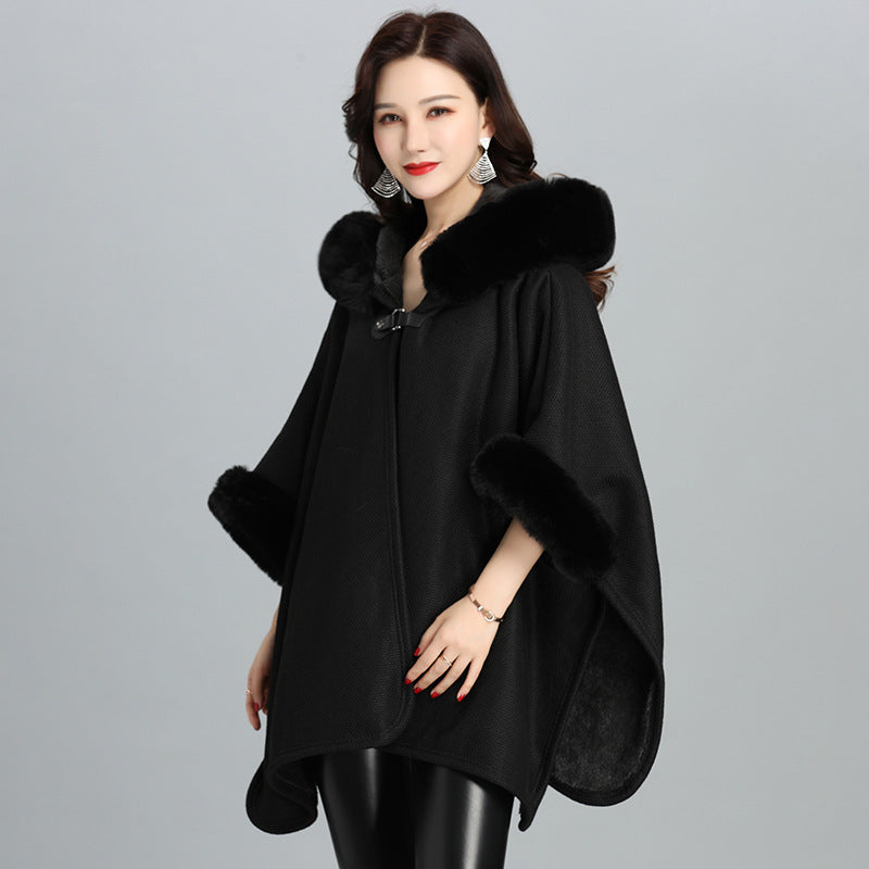 Chaqueta con capucha y chal de piel sintética para mujer, estilo británico, estilo europeo y americano.