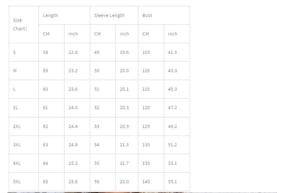 Tallas: S, M, L, XL, 2XL, 3XL, 4XL, 5XL