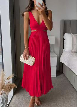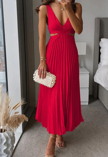 Vestido plisado con espalda abierta para mujer
