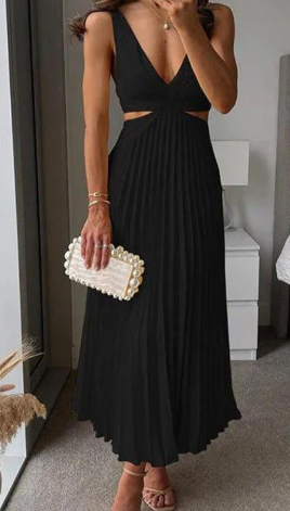 Vestido plisado con espalda abierta para mujer - Negro / Mediano está agotado y se enviará tan pronto como vuelva a estar disponible.