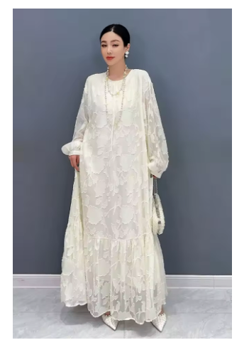 Vestido suelto con falda larga - Blanco / 1 está agotado y se enviará tan pronto como vuelva a estar disponible.