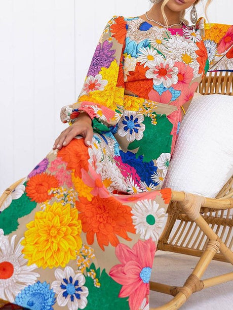 Vestido estampado con cuello alto y botonadura sencilla que ajusta la cintura