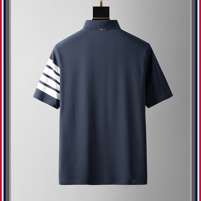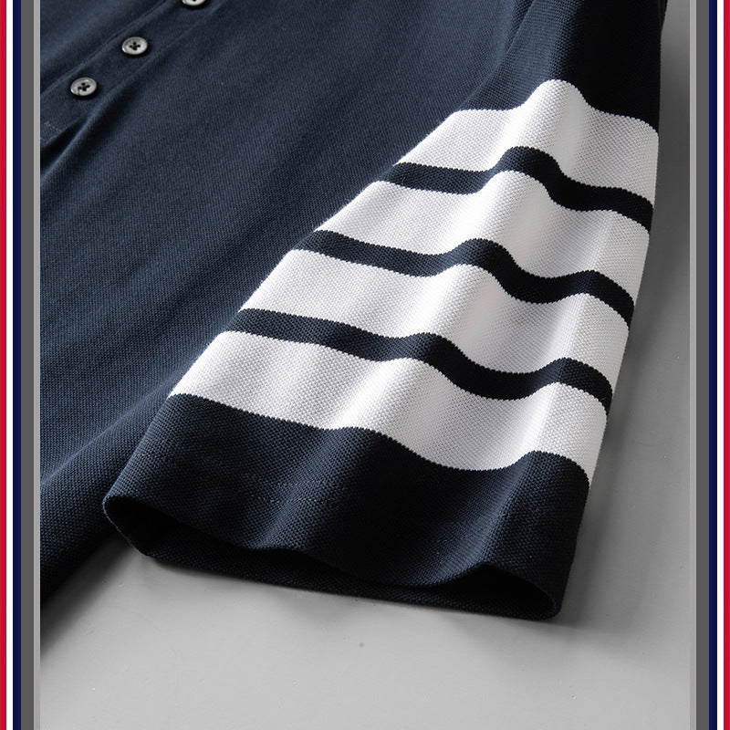 Camisa de solapa de tendencia casual para hombre de algodón puro a rayas de verano de moda - Negro / Chico está agotado y se enviará tan pronto como vuelva a estar disponible.