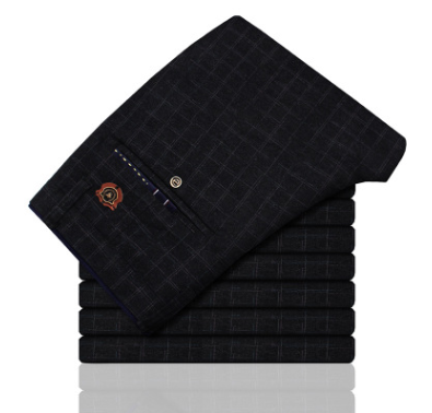 Pantalones casuales de algodón y lino a cuadros para hombre - Azul / 28 está agotado y se enviará tan pronto como vuelva a estar disponible.