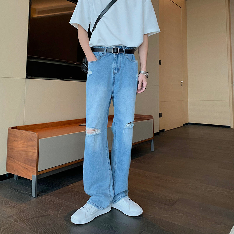 Vaqueros rectos holgados para hombre con rotos en las rodillas de estilo rufián
