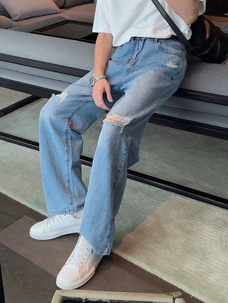 Vaqueros rectos holgados para hombre con rotos en las rodillas de estilo rufián