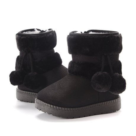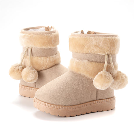 Bota de pompón de invierno para niños - Pantuflas forradas de lana