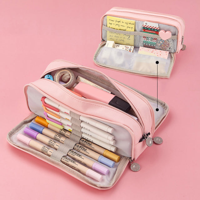 Estuche doble para lápices color macaron - Rosa está agotado y se enviará tan pronto como vuelva a estar disponible.