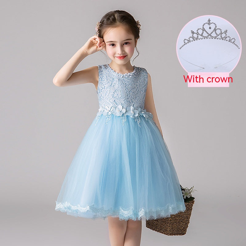 Falda de niña con encaje de hilo abullonado - Azul con corona / 150cm está agotado y se enviará tan pronto como vuelva a estar disponible.