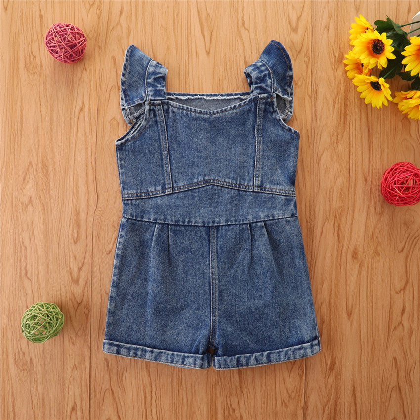 Mono informal de mezclilla con mangas con volantes para niña