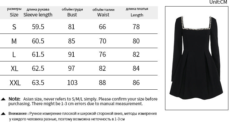 Jane Vestido corto con corte cuadrado y manga larga - Negro / XL está agotado y se enviará tan pronto como vuelva a estar disponible.