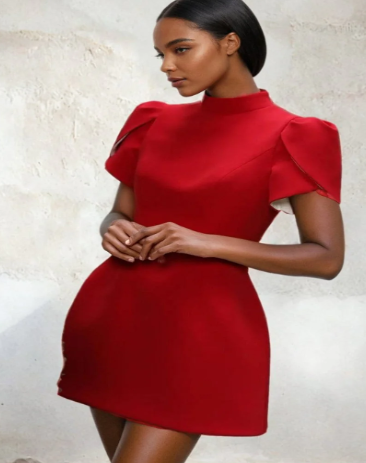 Mini vestido con mangas - Rojo / Grande está agotado y se enviará tan pronto como vuelva a estar disponible.