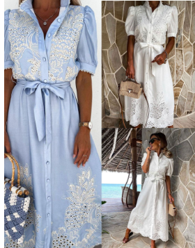 Vestido bordado calado - Blanco / Chico está agotado y se enviará tan pronto como vuelva a estar disponible.