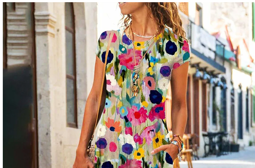 Vestido maxi moderno con estampado floral y medias mangas