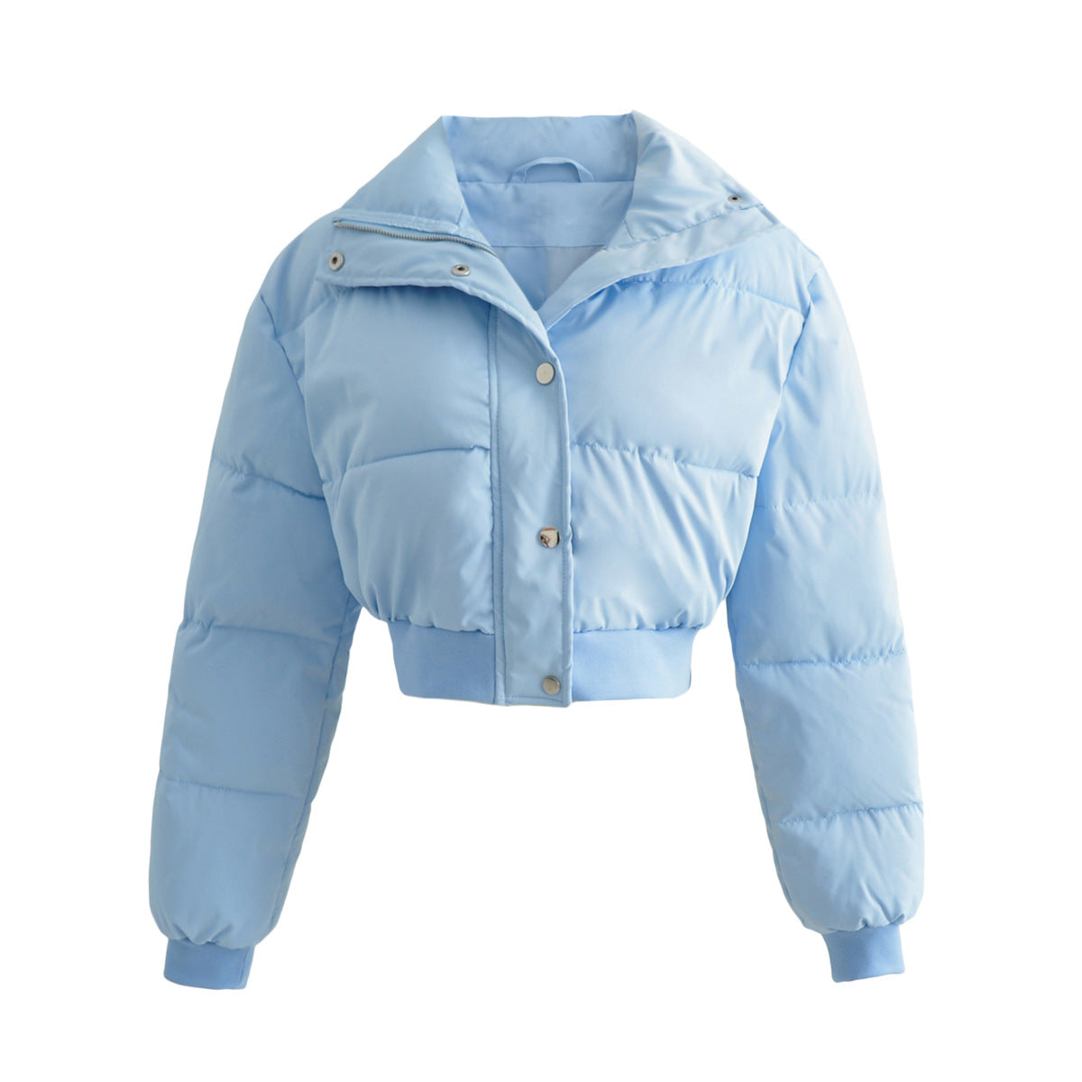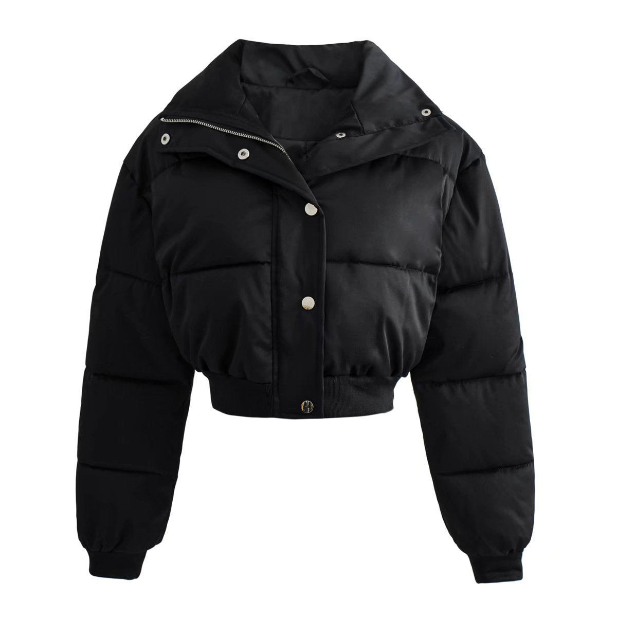 Abrigo de algodón acolchado con cremallera y solapa corta. Diseño moderno de color liso, cálido y cómodo, ideal para combinar en invierno.