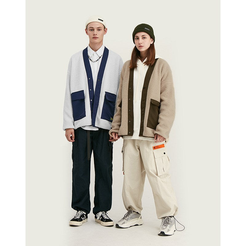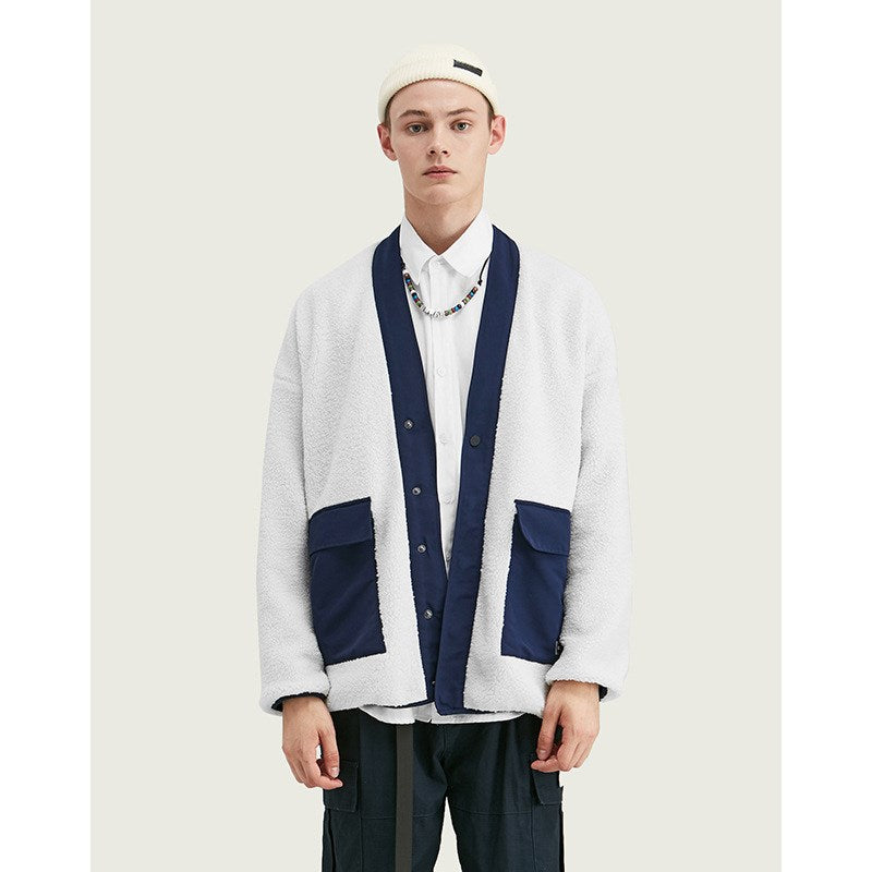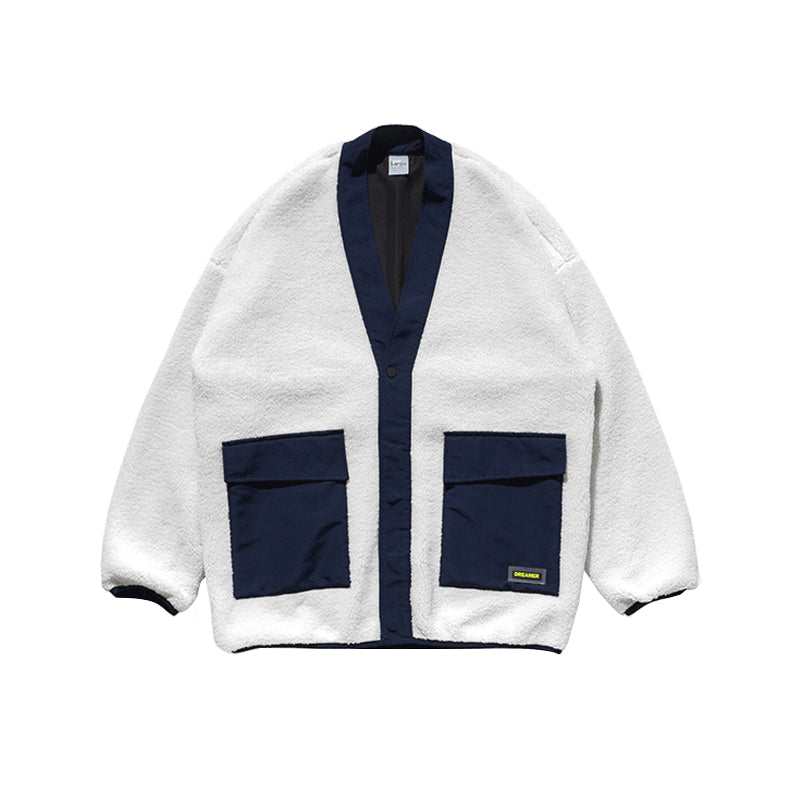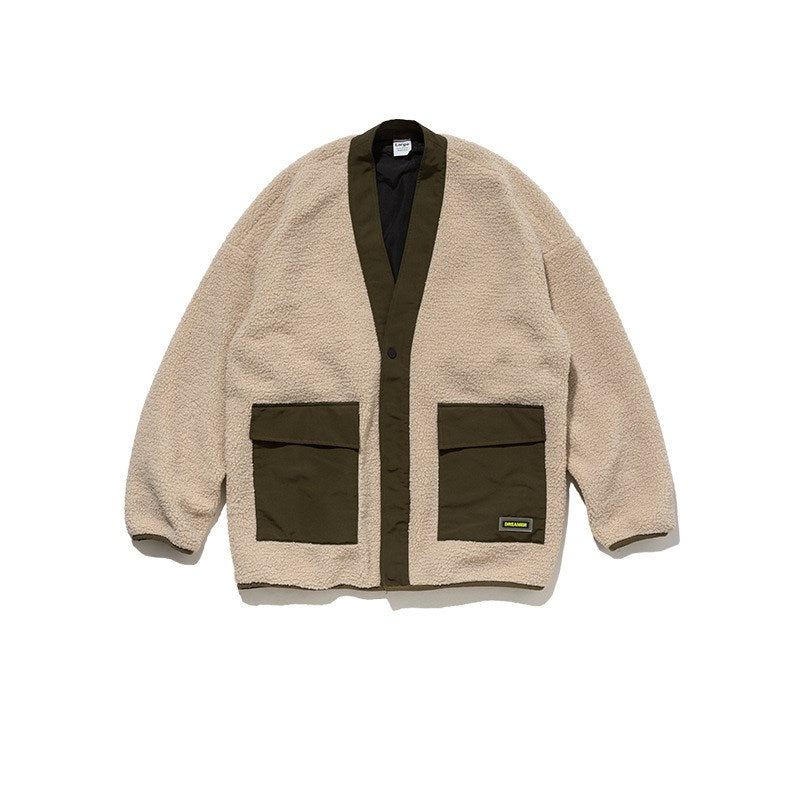 Chaqueta de piel de cordero engrosada con bolsa - Azul / Mediano está agotado y se enviará tan pronto como vuelva a estar disponible.